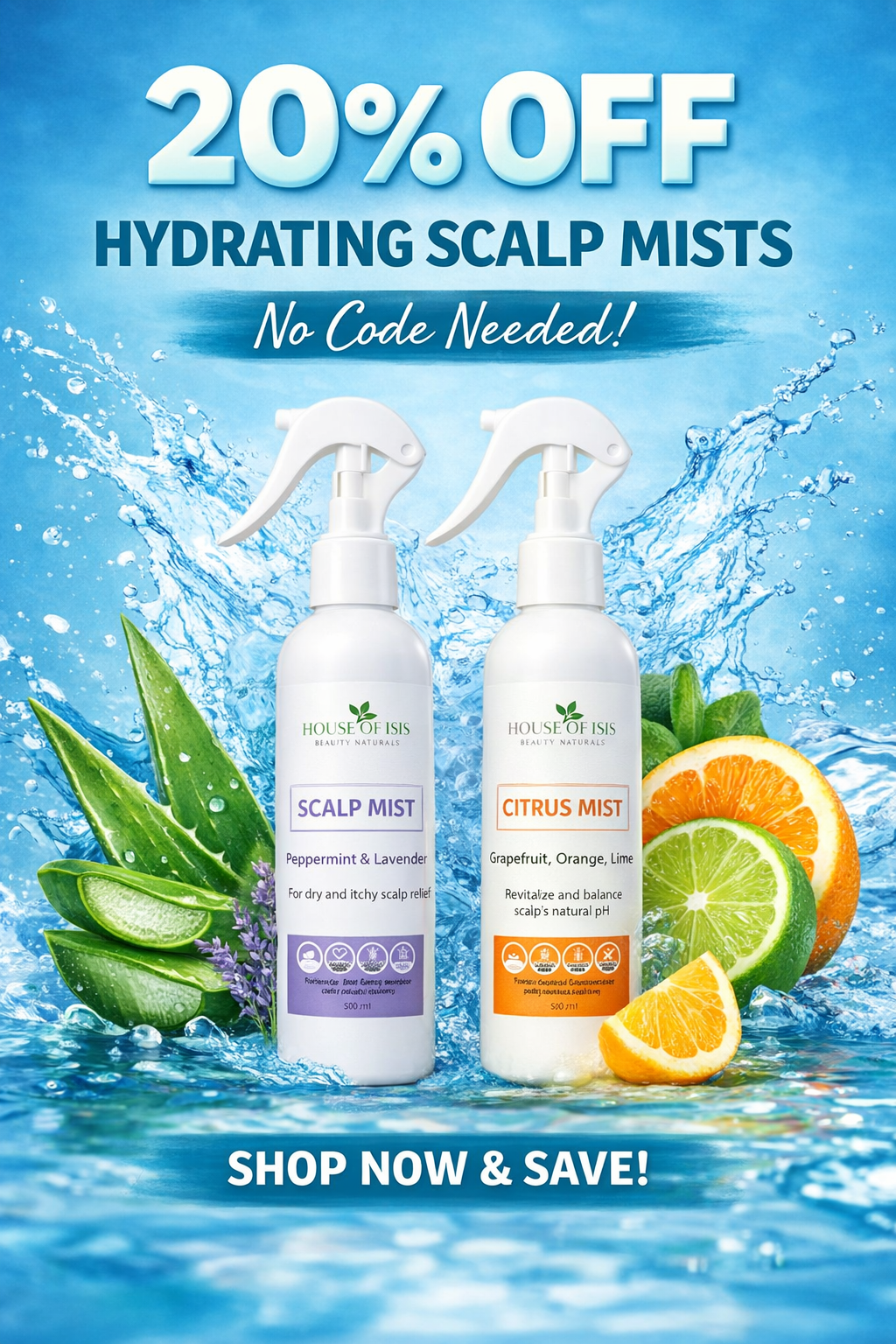 ClaireI received my Scalp Mist 5 days before my wash day and decided to try it. I perspire quite a bit, my scalp included. due to exercise combined with hot flashes. I have to admit it left my scalp feeling refreshed and revitalized so I’m very happy with this product. I will continue to use and recommend it. Thanks House of Isis for your creation.